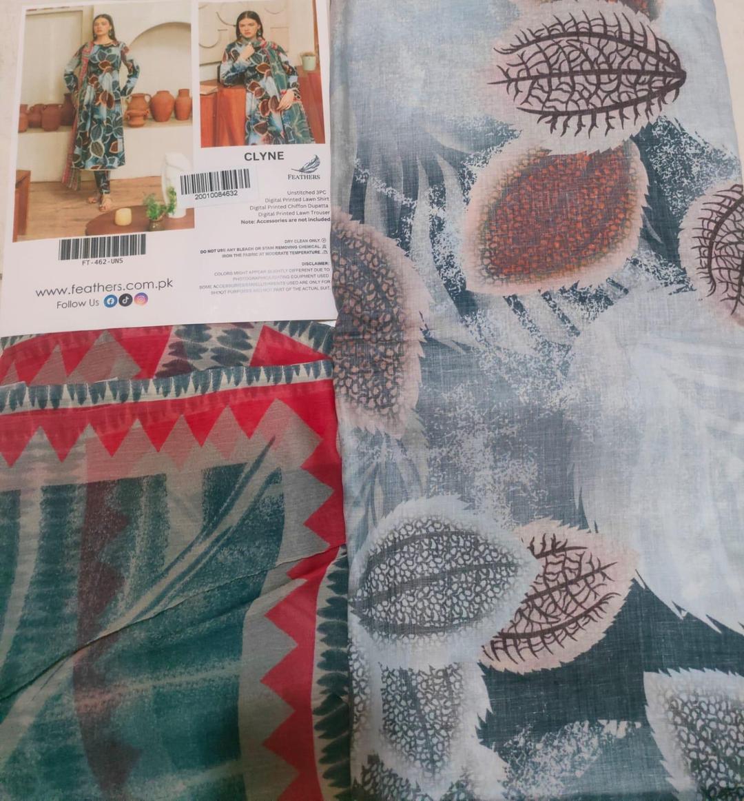 Step into style this season with this 3-piece unstitched printed lawn suit, designed for women who appreciate comfort and sophistication. The printed lawn shirt and trouser are paired with a lightweight chiffon dupatta, creating a chic and graceful look that’s perfect for both casual and semi-formal wear.