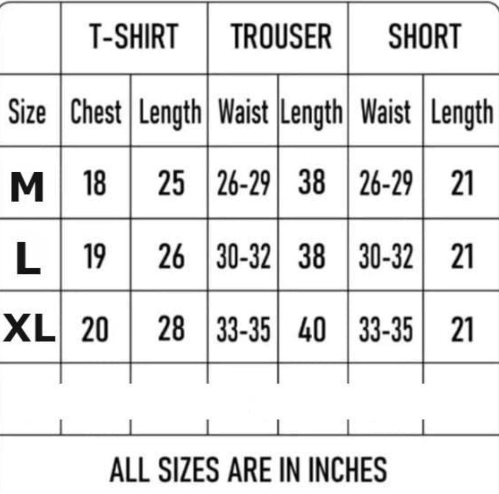 • Shirt: Length 28” | Chest 20” | Shoulder 6” | Sleeve 4”